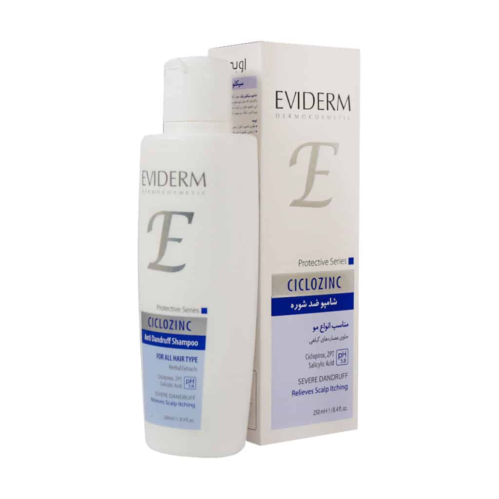 شامپو ضد شوره سیکلوزینک اویدرم (Eviderm Cyclozinc Anti-Dandruff Shampoo) یک محصول تخصصی برای کنترل و درمان شوره‌های چرب و خشک، خارش و التهاب پوست سر است. این شامپو با ترکیب مؤثر پیریتیون زینک (Zinc Pyrithione) و سایر مواد فعال ضد قارچ و ضد التهاب، به رفع پوسته‌ریزی، کاهش چربی اضافی و بازگرداندن تعادل طبیعی پوست سر کمک می‌کند.